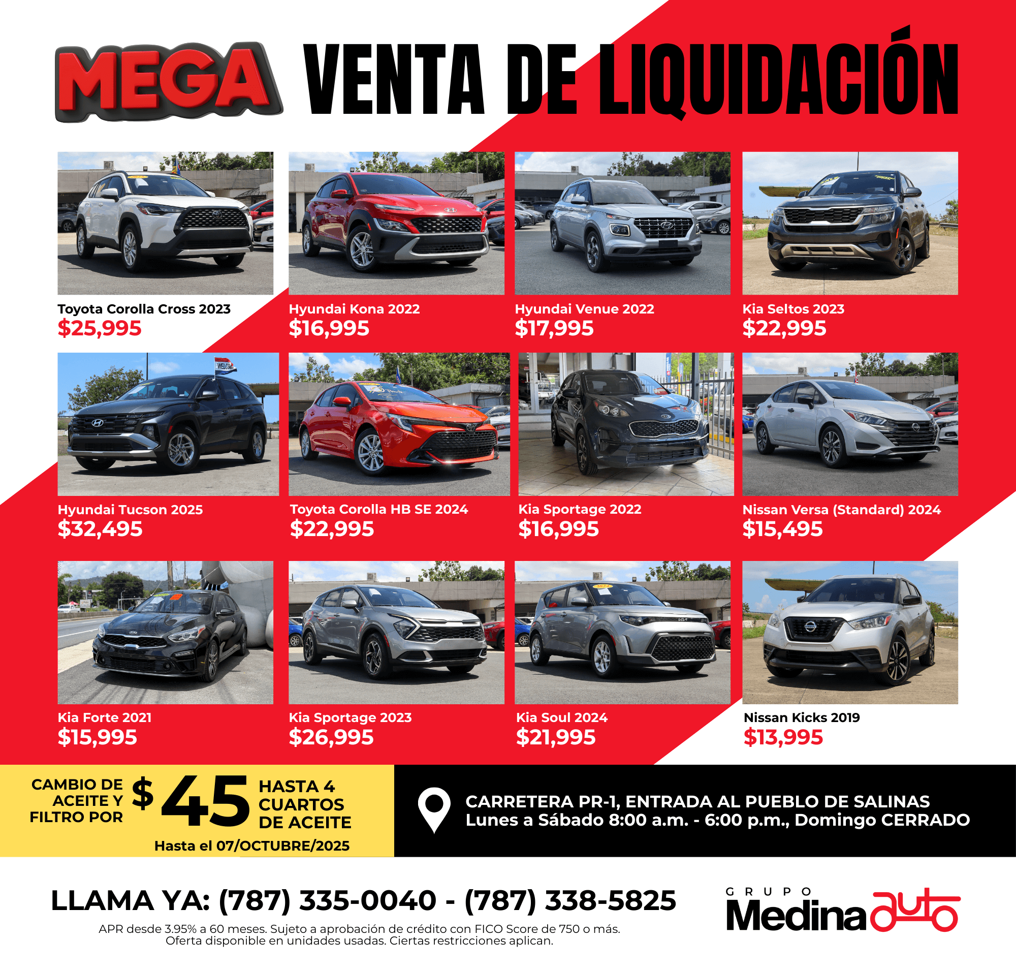 APR desde 3.95% a 60 meses. Sujeto a aprobación de crédito con FICO Score de 750 o más. Oferta disponible en unidades usadas. Ciertas restricciones aplican.